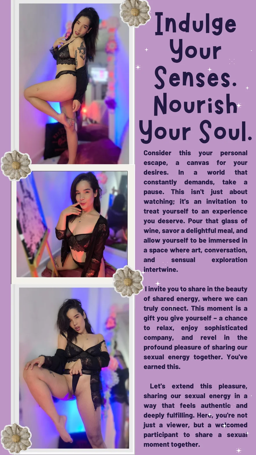 Step into a world of desire and imagination with me 💋 Let’s explore deep fantasies, intimate moments, and irresistible pleasure. Relax, enjoy, and let yourself be carried away… 🌙🔥